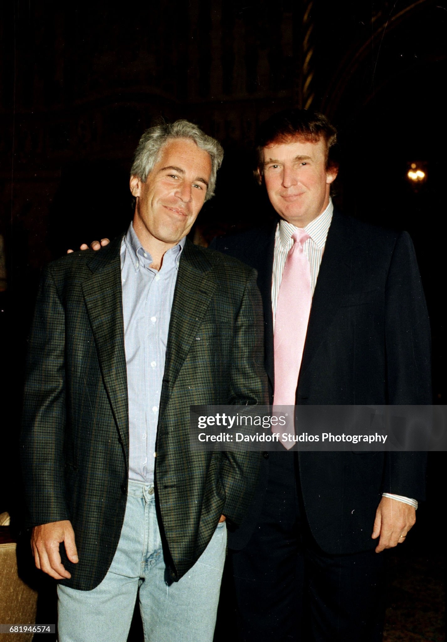 1997: Trump And Epstein Posed For A Photo At Trump’s Mar-A-Lago Property In Palm Beach, Florida. According to a caption from Getty Images, “Portrait of American financier Jeffrey Epstein (left) and real estate developer Donald Trump as they pose together at the Mar-a-Lago estate, Palm Beach, Florida, 1997.” [Getty Images, 1/1/97]